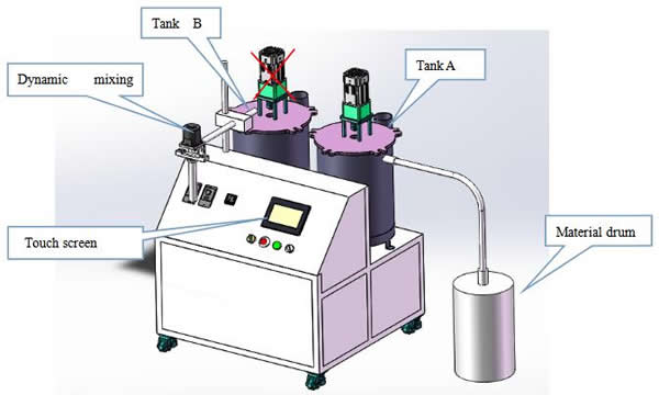 ● Material A adopt gear pump for metering controlled by step motor. |