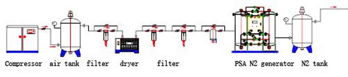 Note: 1. A same N2 generator can run with high purity N2 with low flow, alos can run with lower purity N2 with high flow. Customer can set different parameter for different application required. 2. For same N2 generator, please let us know what's the final usage purity will be. In this way, we will optimize the piping's diameter according the purity & flow. |